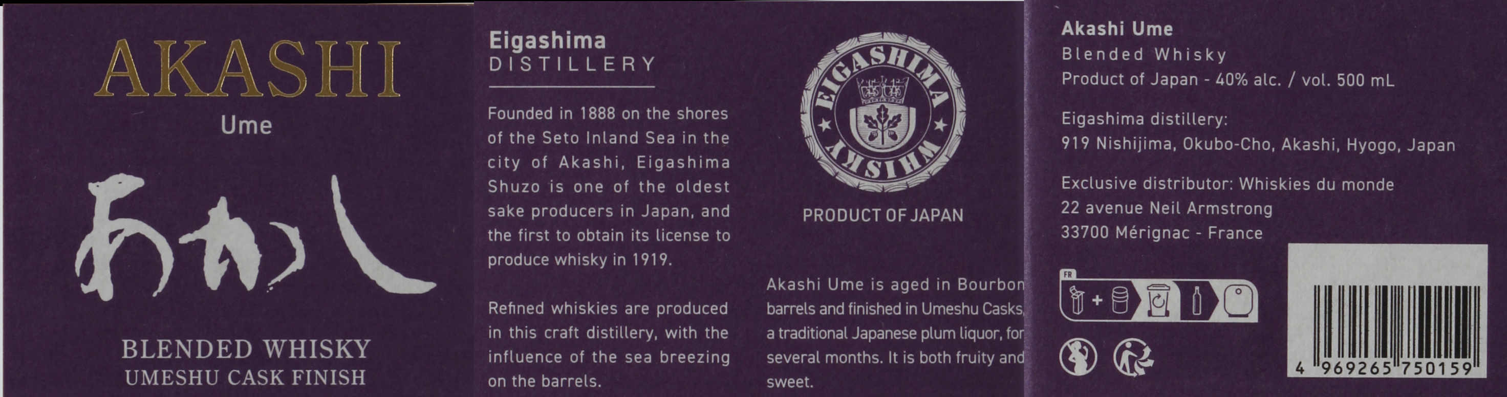 Akashi är namnet på orten där destilleriet White Oak är beläget i ett fridfullt bostadsområde vid kusten, inte långt från Kobe. Bolaget heter Eigashima och producerar framför allt sake och shochu. Blended whisky har producerats ett bra tag men single malt buteljerades först år 2007.